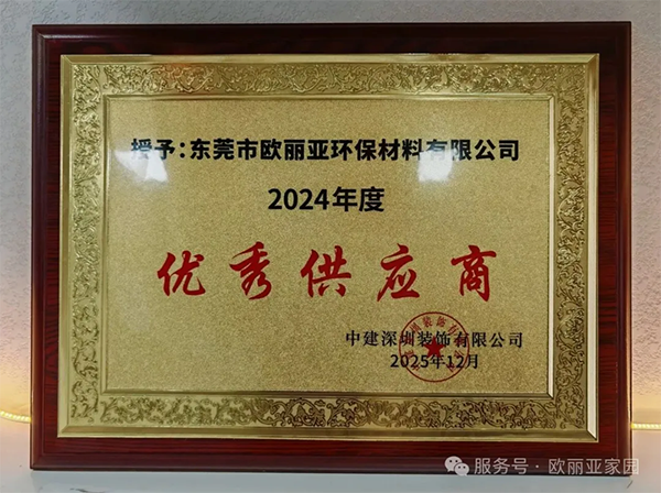 喜讯!欧丽亚获评中建深装「优秀供应商」奖